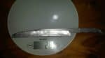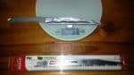 It occurs to me you could sharpen the back of this saw blade so it also doubled as a knife! It would be suitable for filleting fish etc, though not for splitting firewood, as it is too thin (I will look around for another) the main reason you would carry a fixed blade knife. It is obviously good steel. You would have to go easy with the angle grinder when you were shaping it or you would ruin its temper. Regular cooling necessary. A knife and saw for 30 grams though…sounds good!