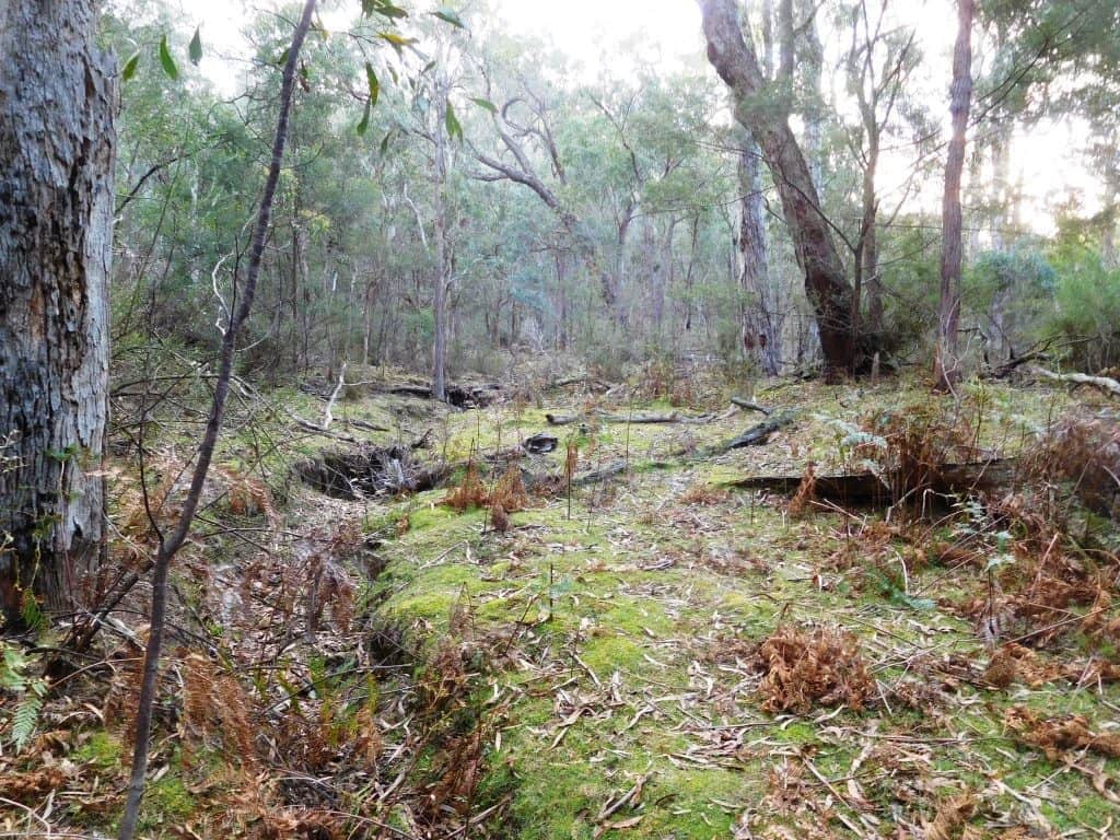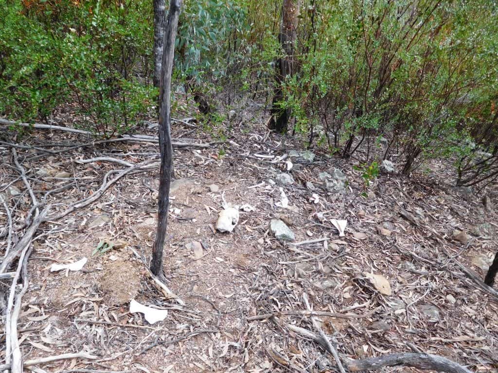 And it leads into very thick stuff indeed with just the occasional small clearing and bedding spot. This old doe had just lain down here and never got back up. She might have starved, died from old age – or worse still carried a bullet all the way from the road perhaps. On this occasion a herd of other deer (doubtless her relatives) had been sleeping contentedly beside her remains. I have seen this before. I canoed down the Macalister after the devastating fires there a few years ago when the river was still full of dead eels as thick as your legs and as long as you are, and the banks still strewn with the carcasses of innumerable wallabies etc which had starved.The place reeked and the river water was nearly one-half mud by volume. I filled an empty drink bottle which stood on our window ledge for many years to illustrate this. It’s no wonder all the fish died.