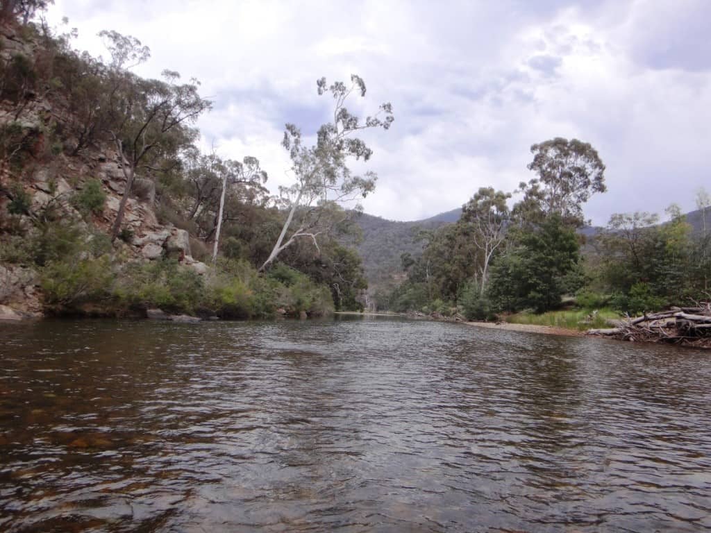 Very little rain was forecast for the three days – and very little fell. We were however treated during the night to that beautiful brooding, ominous rolling booming of thunderstorms clawing their way across the faces of the mountains, and to the mysterious comings and goings of the cervine denizens to their wallow not twenty yards away. I have picked out the best 40 or so of a couple of hundred snaps I took during the six lazy hours we were paddling on the second day. We ended up camped just below the twin bridges of Neates Track, again on a lovely grassy verge where a small stream entered the river on the true left bank. The snaps are in order, so mostly I will just allow them to reveal this wonderful river to you.