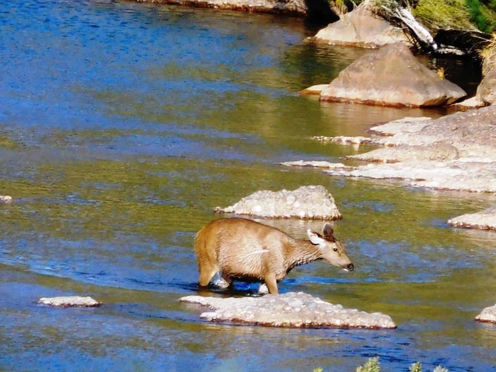 And suddenly around a corner this beautiful little doe came swimming and wading along in the river. Such a joy to watch wildlife.