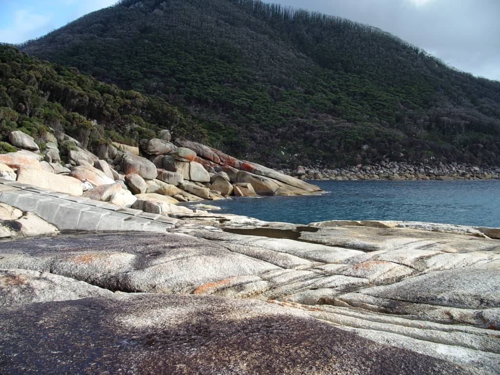 You can spend a lovely two days walking from Mt Oberon Car park to Wilsons Prom Lighthouse and back staying in pretty plush accommodation at the lighthouse. The distances are considerable, but this way you only need to carry a daypack with emergency supplies, a bottle of wine to drink on the verandah at night etc, so the 19.1 km there via Telegraph Saddle and the slightly longer journey back via Little Waterloo Bay is quite ‘doable’.
