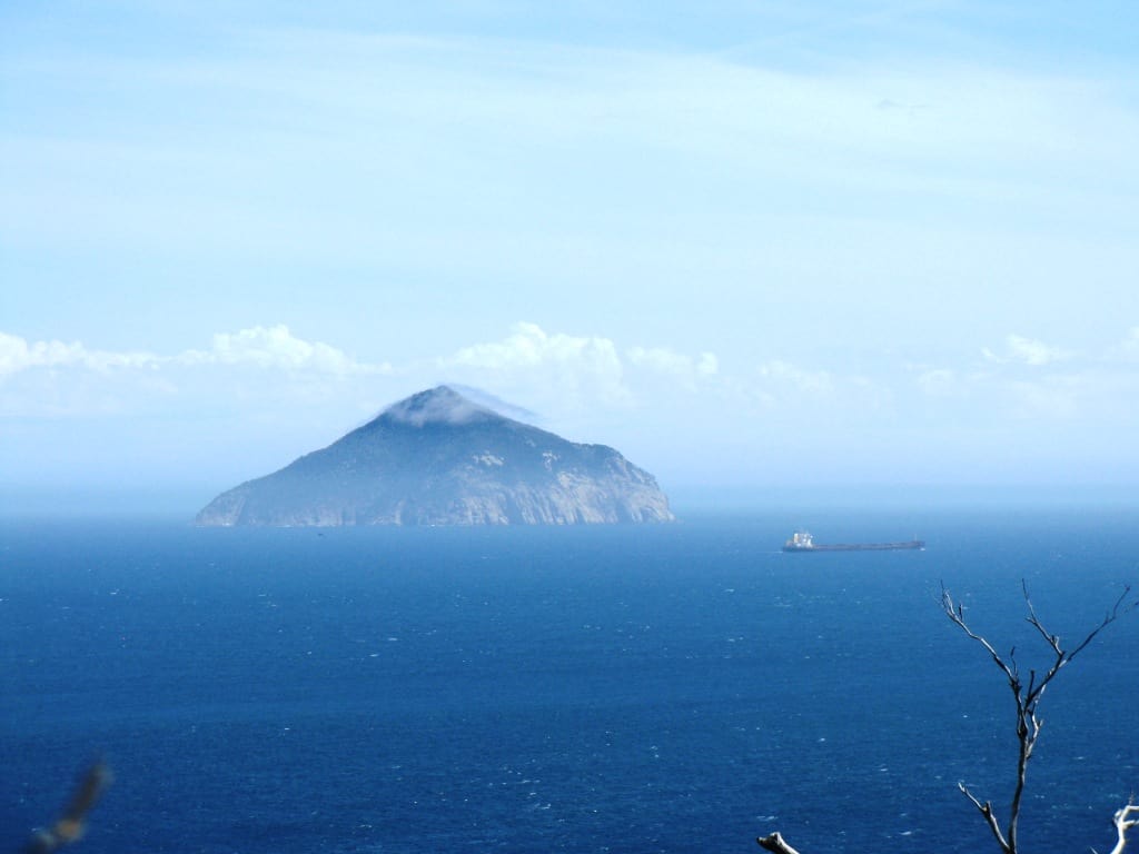 A ship sails past Rodondo Island which has been climbed (but not by me).