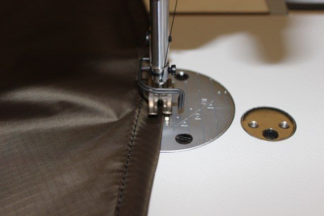 Sew one line of stitching about 6mm from the edge along the length of the ridgeline. This is used just to hold the fabric prior to binding the ridgeline.