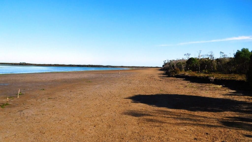 You could either walk along the high tide ‘track’ or make use of the many sand tracks in the park itself. If you have a look first on Google Earth, you will see what I mean. The ‘high tide track’ is blocked off (poorly as it turns out) by large concrete obstacles to (ineffectively) stop the many hog deer poachers. There is a lot of evidence of these beautiful little deer (and we saw three of them in broad daylight), so no doubt the poachers have a wonderful time of a night.