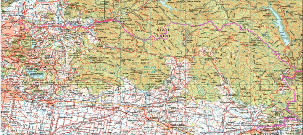 DISCLAIMER: This is a personal website. I have no authority to offer any of the contained advice, nor will I accept any responsibility for what may happen to you if you follow it. Notwithstanding, I have made every effort to ensure that the advice IS true and correct. The entire route is in a high rainfall area. You should be experienced, well-equipped bushwalkers. A fair degree of bush skill is a good idea before undertaking such a journey, as is the inclusion of a compass, map, satellite phone and epirb in your kit – and the suggested map and App on your mobile phone – there are few places along the track where the NextG phone will work (eg Mt Horsefall), so it should probably best be left in Flight Mode unless you are accessing a map/GPS location. Also WATCH THE WEATHER. Particularly on the Baw Baw Plateau heavy rain/snow, strong winds etc may occur – and indicate the journey ought not be taken in the cooler months. I will develop an alternative (lower) route which is more suitable at those times (eg along theTyers/Tanjil/Toorongo Rivers). Later I will also suggest some alternative routes should you wish to vary the trip on a later occasion. As well I will suggest some additional side-trips if you want to extend your journey. Wildfire is also a potential risk in the hotter months. There ARE poisonous snakes, the danger of falling trees etc. Some places are supposedly illegal to camp, and some places (eg along the Baw Baw Plateau, no (camp) fires are permitted. Fines may be applicable unless you obey the Eleventh Commandment: ‘Thou shall not get caught!’