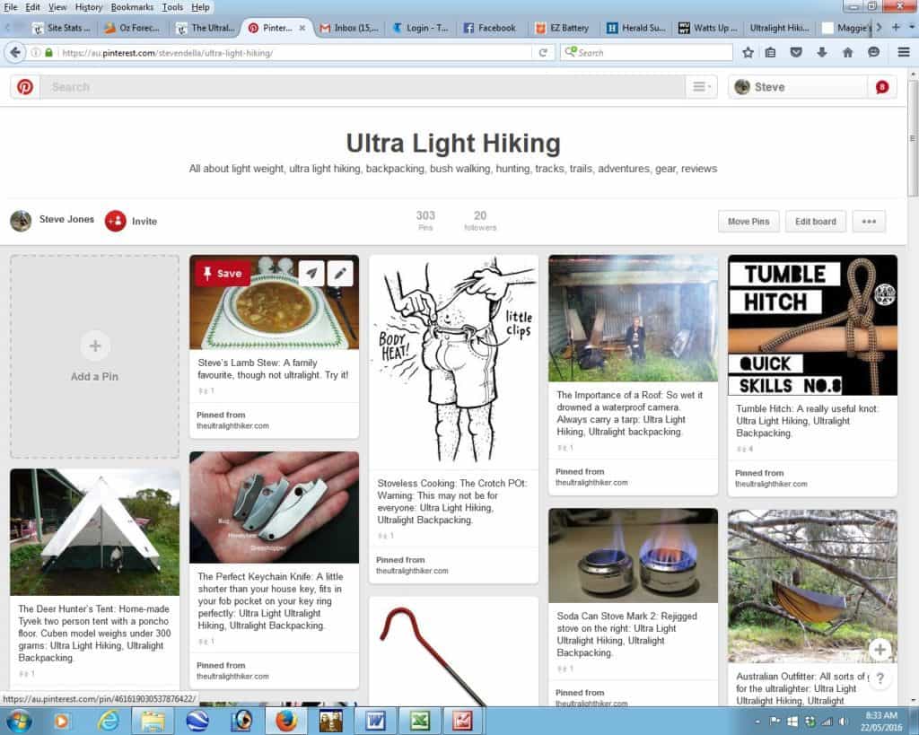 Ultralight Hiker on Pinterest: https://au.pinterest.com/source/theultralighthiker.com/ I have hundreds of ‘pins’ here (and many more to add!) Perhaps you would like to ‘follow’ me there or ‘pin’ some of them to help me spread the word? Also, perhaps you might like to ‘Share’ some of my http://www.theultralighthiker.com/ posts on Facebook too (or ‘Follow’ it) or ‘Like’ my Facebook page https://www.facebook.com/theultralighthiker/?ref=aymt_homepage_panel ! Hope you are enjoying my posts. Thanks for your help.