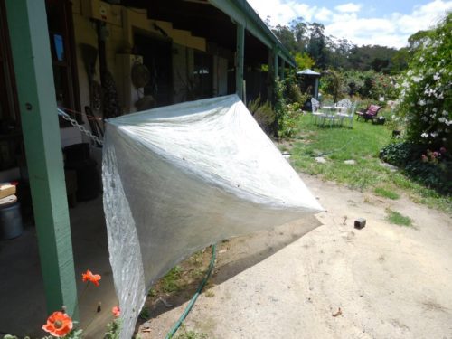 Of course it can be tied/pegged out much tauter than this. I am not expecting to be camping on the verandah (though that is where many ideas are first tried out – as I’m sure you have already noticed!)