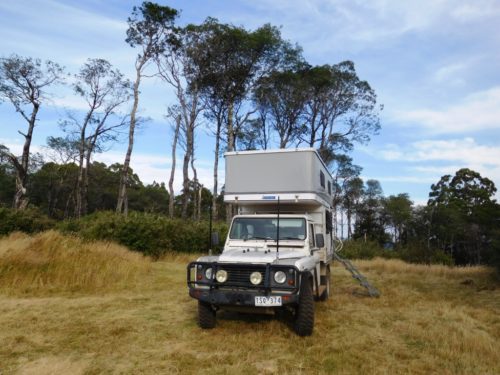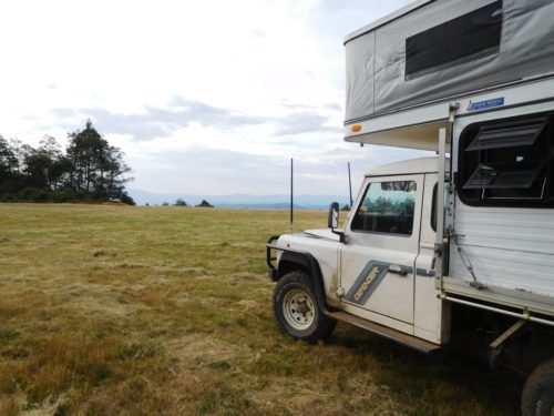 Here we are set up in a sheltered shady spot atop Mt Horsefall – with even a mobile and internet connection!
