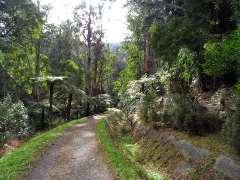 Warburton is in the middle of the trail. The trail is on the north side of the Yarra. About 700 metres from the Yarra to the aqueduct on a well marked path. It’s a good alternative to the rail trail and you can also access the weir from the Warburton -Woods Point Road about 15 km east of Warburton. There is a locked gate there which was closed to walkers until about 4 years ago but now there is a 6 km walk, that goes along a road then follows a pipeline.