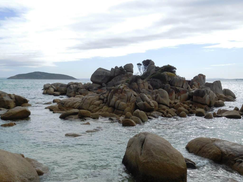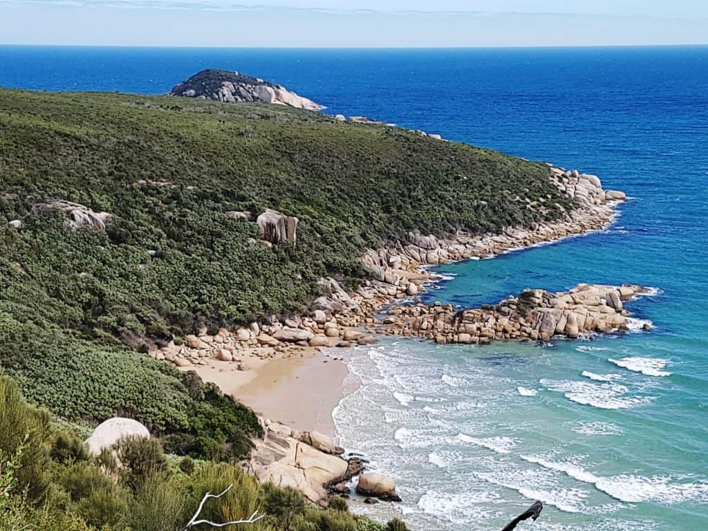 Tongue Point and Fairy Cove, Wilsons Prom, Gippsland, Victoria, Australia: A magical 20C winter’s day yesterday, so time to try out Della’s new heart and my new pack http://www.theultralighthiker.com/the-stout-hikers-pack-2/ with a walk in Wilson’s Prom NP, Gippsland, Victoria. I will let her begin: ‘Return to fitness #2: Beautiful winter day and further heart progress – Steve and I did a 10 km walk at Wilson’s Prom, Darby River to Tongue Point, including a side trip to the delightful Fairy Cove. Daily workouts of an hour’s fitness class plus an hour of walking have boosted my heart stamina. More progress planned: Perhaps a trip to Cairns next month to climb Mount Bartle Frere… onwards and upwards!’