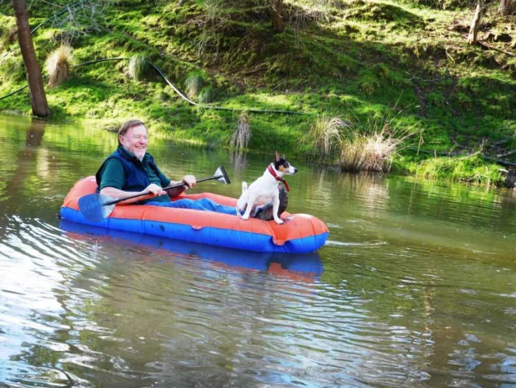 Here’s me and Spot trying it out on the farm dam: http://www.theultralighthiker.com/the-best-laid-schemes/