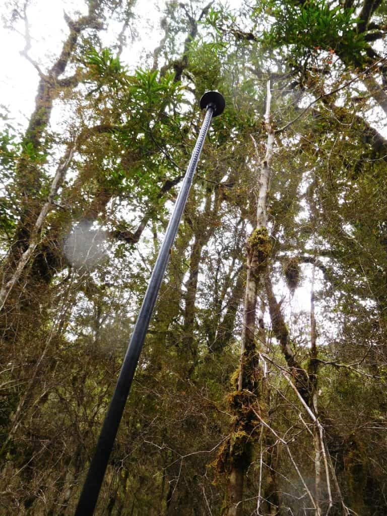Note: I have a confession (of stupidity) to make. Somewhere during this section between the two upper walkwires on the Hauroko (You can imagine it is in the photo above) I encountered quite a strong ‘animal’ smell not unlike a goat. I thought to myself at the time, ‘Well, it’s not a deer’. Then I thought, ‘Could it be a plant’. You know how Dogwood in Australasia is so named because it smells somewhat like wet dog. I thought to myself ‘I wonder whether the Leather Wood which you encounter just before the tops in NZ (and which is redolent with the musty odour of countless deer) is so called because it smells of leather?’ There is a sweet cloying honey-like smell you sometimes encounter in these Fiordland forests I have never been able to identify, nor has anyone else I have spoken to been able to pick it for me. (it is not the flower of the ubiquitous tiny epiphytic orchid). I scanned the forest about. Saw nothing. Thought to myself, ‘I do not want to arrive at Lake Roe in the dark’ (The hut is hard enough to find), and carried on. Since then, I have bothered to check what a moose smells like. You guessed it. Just like what I was smelling on the Hauroko that day. There was a moose not 200 metres upwind from me, and I walked on. Despite having a tarp and hammock and weeks of food, so that I could have spent days hunting it! And I would have doubtless ‘put it up’ withing ten minutes! Despite the fact that one of the important reasons I go there is to see a moose. Despite the fact that I had photographed fresh moose barking just back there a little (See: http://www.theultralighthiker.com/from-dawn-to-dusky/). Despite the fact there is a $100,000 reward for a photo of a NZ moose, I walked on! : Lesson: Trust your nose!