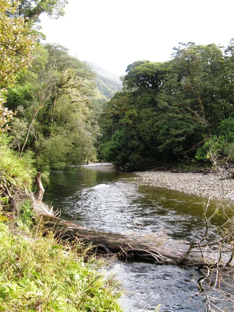 Most folk walk from South to North, ie from Lake Hauroko to Lake Manapouri. This is dictated by the availability of transport to begin/end the trek. Both ends are on a lake which has to be crossed, usually by boat. The regular Lake Hauroko boat drops off twice per week (sometimes only once now) whilst there are several boats a day across Lake Manapouri. This means that if you wish to walk the track largely by yourself, you have only to wait at the Hauroko Hut for a day or two (fishing) whilst others get well ahead of you. I usually bring in some canned (or pouch type) food to last these days, leaving them in the hut if I don’t need them where they are available to others who might be stranded there for a few days – but without causing a rodent problem. Of course you can charter a boat, plane or helicopter anytime.