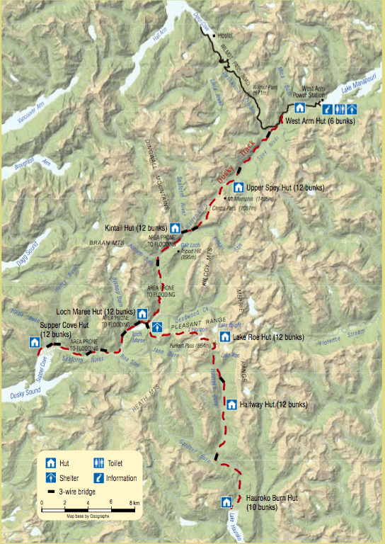 You should also download (to your phone) the map here: http://www.doc.govt.nz/parks-and-recreation/places-to-go/fiordland/places/fiordland-national-park/things-to-do/tracks/dusky-track/ and the brochure here: http://www.doc.govt.nz/Documents/parks-and-recreation/tracks-and-walks/southland/dusky-track-brochure.pdf so that you can study them beforehand and refer to them as you go along.