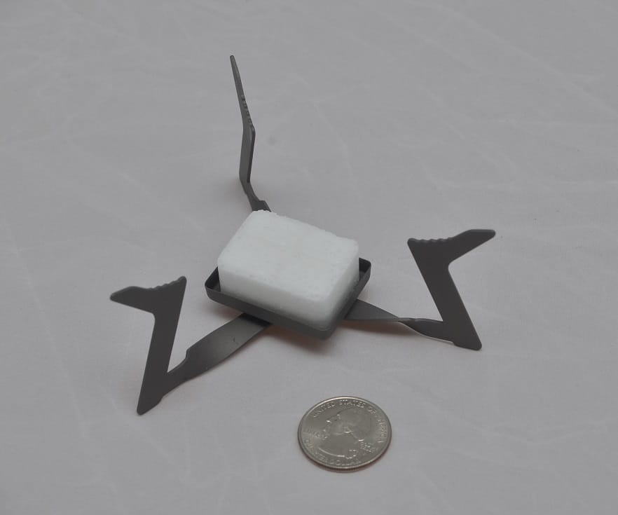 My everyday carry is a bare Caldera Cone – I do not worry about leaving a tiny burnt spot; I only camp in the trackless wilderness anyway – which only weighs at most 30 grams and doubles as a windscreen for the alcohol stove. I always carry a couple of spare tent pegs anyway which is all that is needed to sit your billy on. Wherever I go there are always twigs. Hope you enjoy your dinner as much as I do.