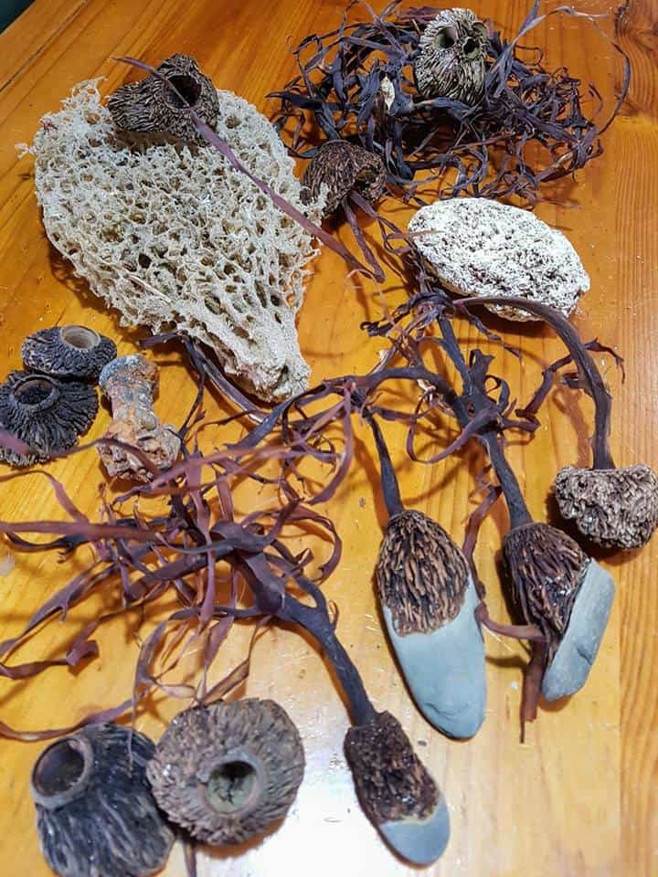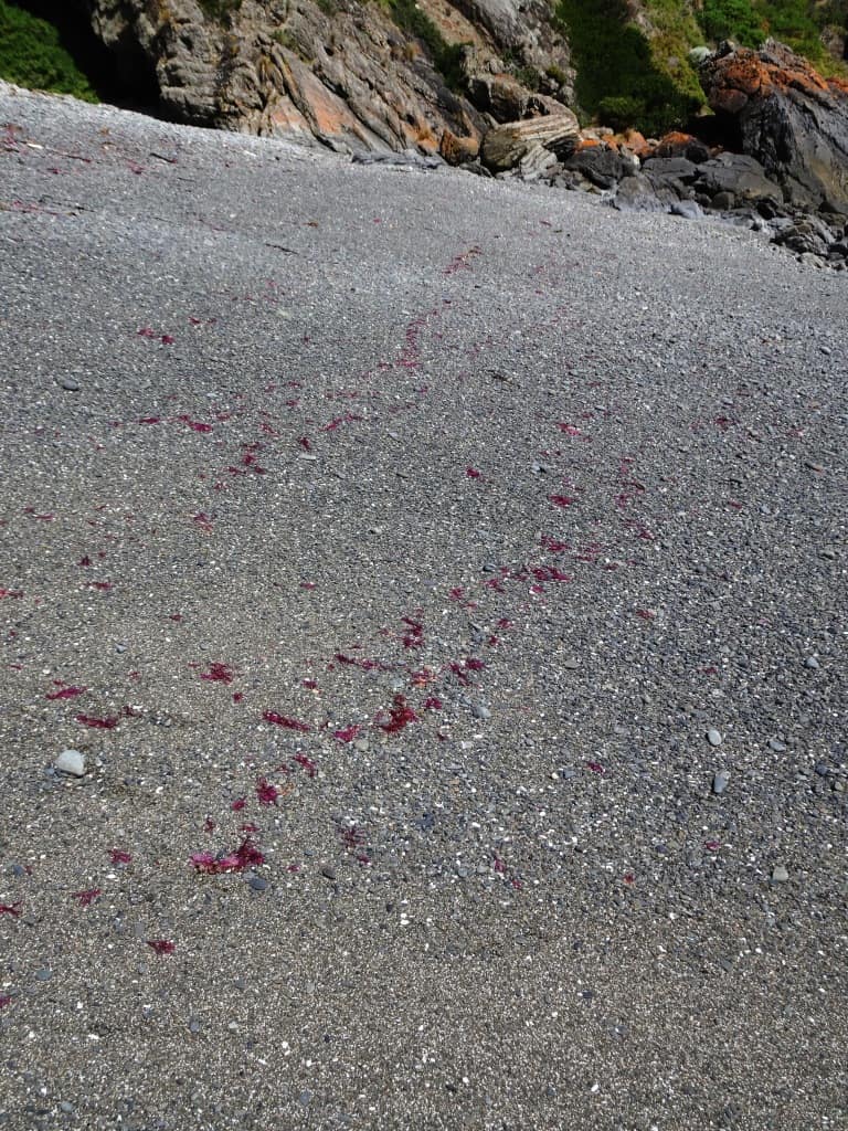 Of course everyone comes home with a few trophies. The sea is depositing hundreds of semi-trailers worth every day, and we maybe take away a small bucketful. The most interesting thing I found was an old iron ship’s rivet which had become encrusted on one end with barnacles.The plants which had used stones as anchors were pretty special too. And the coral which has no trouble growing in these 10C colder waters just as they have no trouble growing in the 10C hotter waters of the Red Sea. As I said before: Nuts to Leave No Trace.