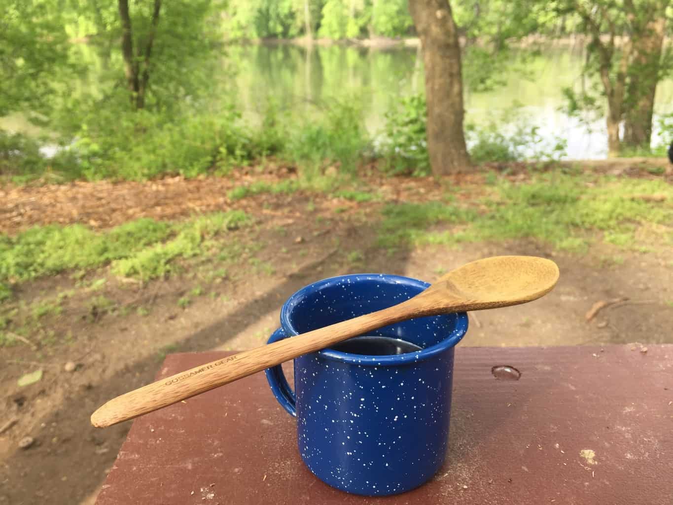I can get away with just a single spoon for a journey lasting weeks. However, I always carry a fixed blade knife as well which is handy for cutting salami, spreading peanut butter, filleting fish and etc. Its most important use is for splitting wood to get at the dry ‘heart’ or shaving it to create excelsior when you need to light a fire in the wet. The Kabar Johnson River Piggyback is just about perfect. It weighs just about an ounce.