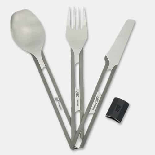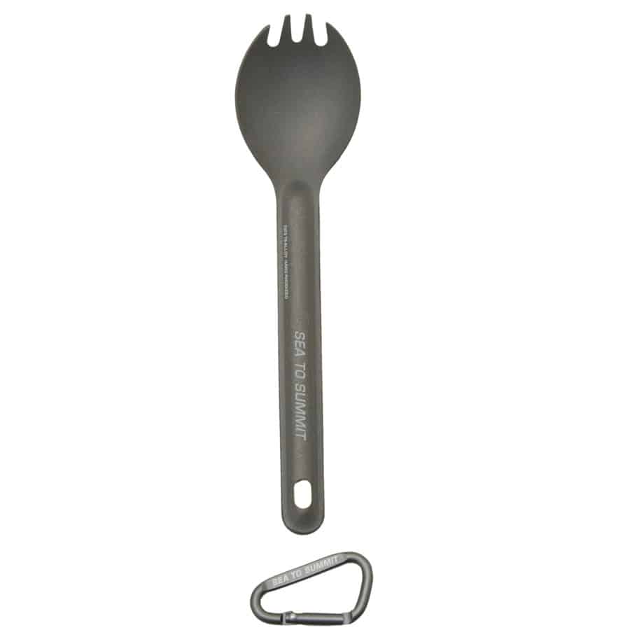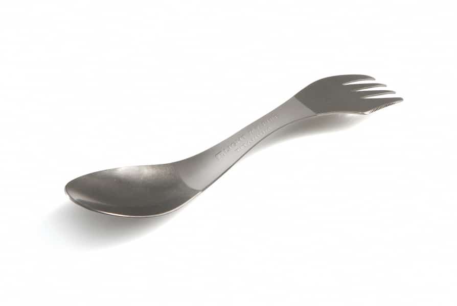 The Light My Fire Titanium Spork at 20 grams solves the dilemma of whether to take a spoon or a spork – and if you love titanium, it is a must: