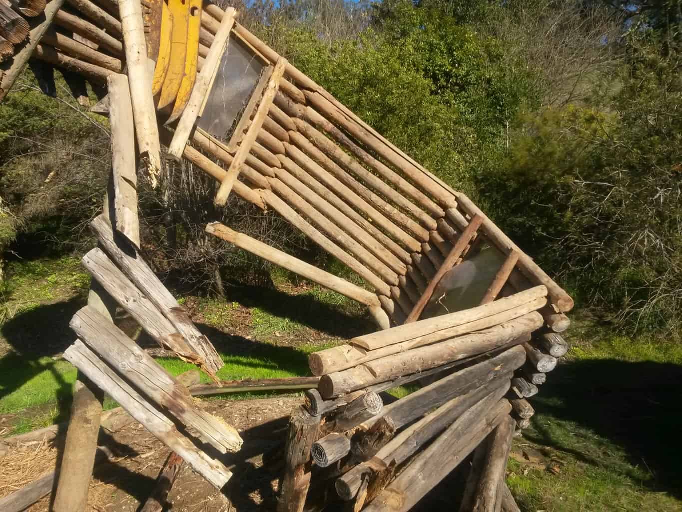 Made completely out of scrap for $0.00 back when the kids were little. Like all cubbies they never played in it. A hexagonal log cabin – I liked the idea.