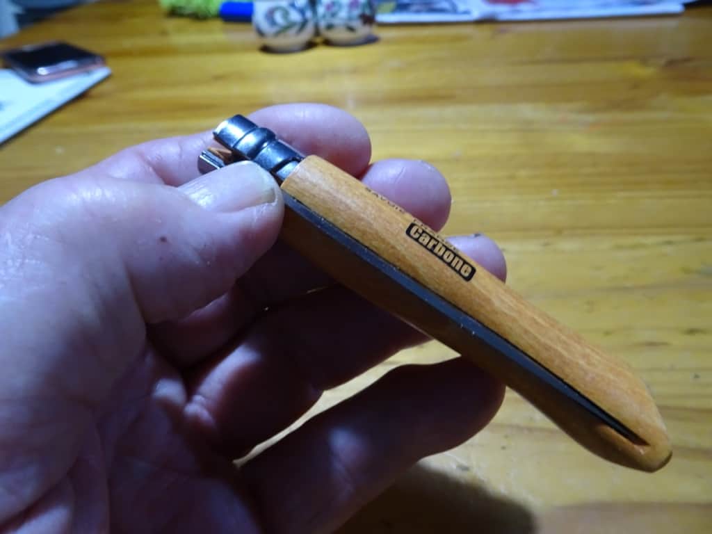 Hi, I learnt of these lovely knives back in 1991 when I bought a few in Paddy Pallins in Melbourne. Then I found they’re almost an institution in some parts of Europe, like the SAK. Very cheap but the carbon steel blades are very sharp, stay sharp and easy to sharpen. These do take on a patina after a while but I always leave a light smear of oil on the blade. The wood handles have not cracked till now.. recently I decided to soak them a bit in the leftover linseed oil from soaking my axe handles: it turned out great! But don’t over do it or the blade can be a bit stiff to come out. The handles are good despite not having a bolster. I liked the simple lock enough to make an opinel the first knife I gave to my son when he turned 7 a few years ago. (Told him not to tell his peers at school for fear I’d be reported – don’t want Family Services breaking down my door hey..). Love your articles, thanks!! Rgds from Melbourne, Tuckyin