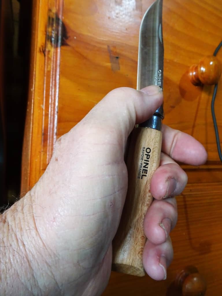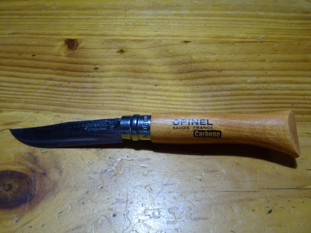 Opinel make some pretty unique knives. I guess I came to the party a bit late on this one, but I have two of them in my hand right now and they are magnificent! First I bought the Opinel No 6: because a reader (Tim) recommended it (in this post), as follows: ‘Opinel #6 has a lock blade of about 72mm at 27g. Easy to sharpen, very nice to use with its full flat grind to zero. My favourite folding knife when weight matters.: https://www.opinel.com/en/tradition/stainless-steel/n6-stainless-steel‘ He suggested the stainless model but I found the carbon steel one cheap so I bought it: https://www.opinel.com/en/tradition/carbon-steel/n6-carbon It cost me only A$16.99 (delivered) on eBay. A very good buy.