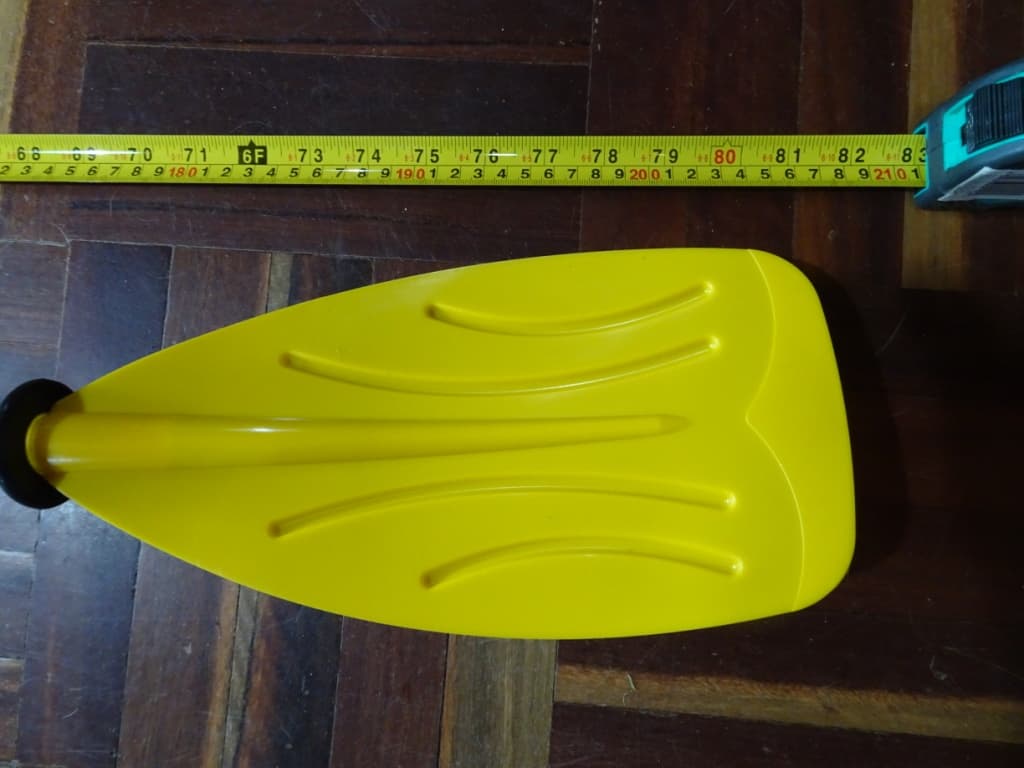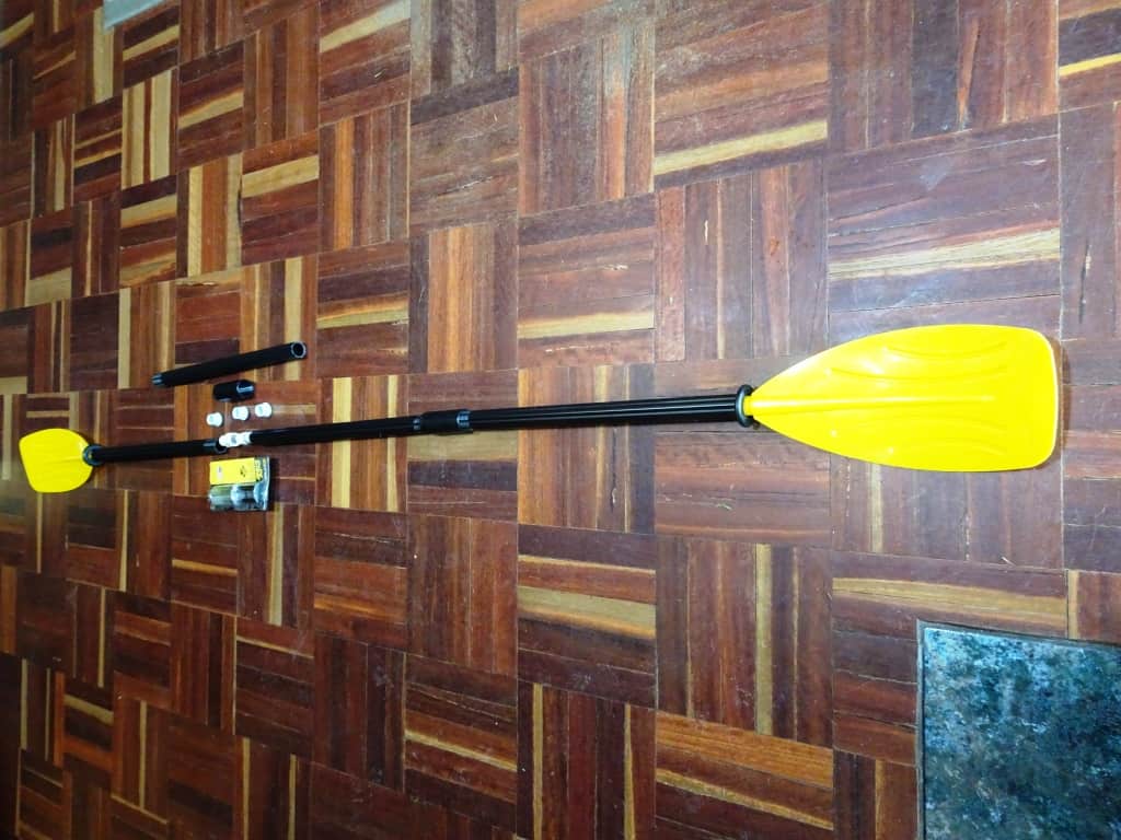 If you are going to use the faux pack raft (with nappy!) for serious white water, I suggest you buy some serious paddles such as these, but for a cheap expedient this ‘hack’ works well.