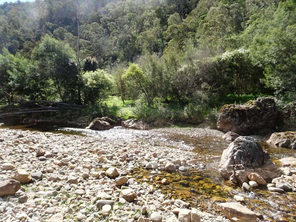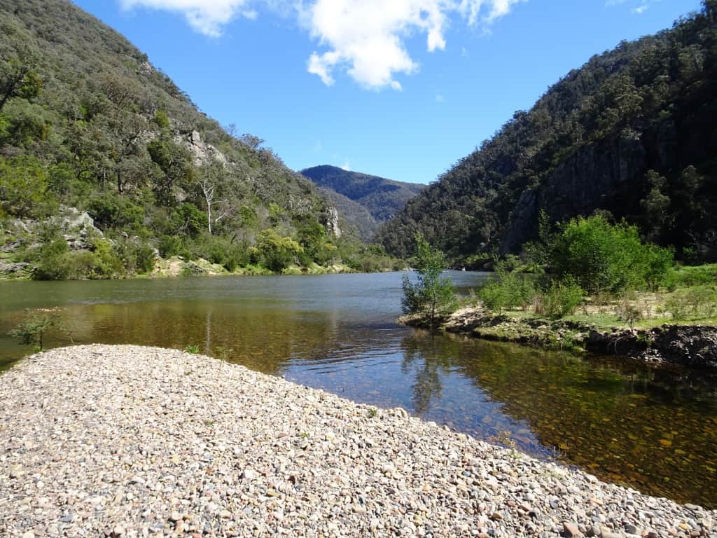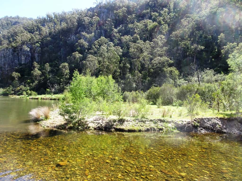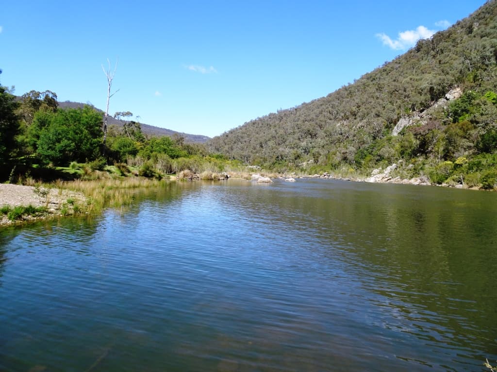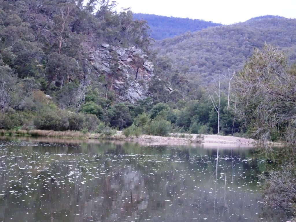 I carried this little raft (now US$110 – Sept 2019) to get me across the river. Under a kg and this half kg paddle. I forgot my 282 gram life vest. I am still here so it clearly would have been a waste of effort carrying it! Photo below was taken in the farm dam, but you get the idea. They are not a great craft. But they do the job. Just. I will make one of my own of these folks light weight models: https://www.theultralighthiker.com/2017/01/02/new-diy-pack-raft/