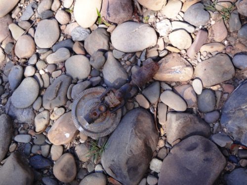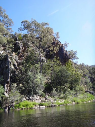 Nowadays there is a free camping ground (with fire pits, toilet, etc) at Black Snake Creek (which was a town with a PO etc during the Depression). The remaining hut is the home of its last inhabitant, Harry Gee who stayed on here alone for many years. His house used to have a huge walnut tree on the Downstream side and a vast loquat on the upstream side. There was a bridge spike in the walnut tree about 8′ up where he used to hang the carcass of a sheep, etc he was to eat.