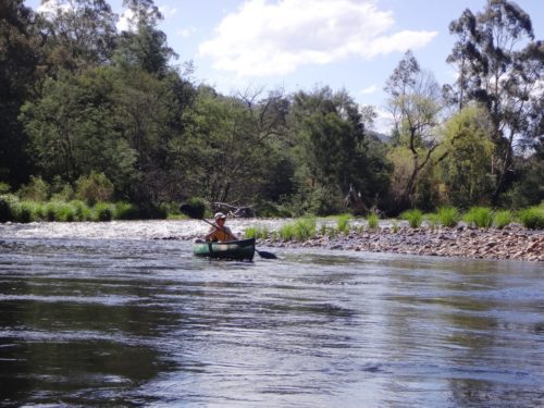 Every now and then you might encounter something (a tree down perhaps, or a log sitting in a dangerous position) where you want to get out and walk the boats around. Della does not see as well as she used to, so reverts to this strategy more than I do. Also, sometimes she misses the deepest channel and has to get out – but she has only 38% vision, so if she can still canoe this river, I’m sure you can! You need about 1.70 metres at the Waterford gauge to canoe from the Kingwell Bridge to the Waterford Bridge http://www.bom.gov.au/cgi-bin/wrap_fwo.pl?IDV60078.html