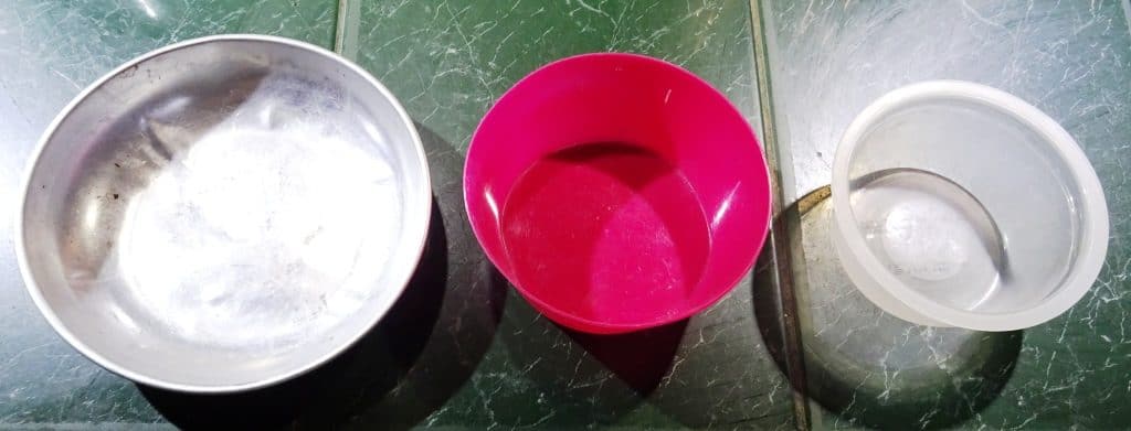 These are the best three we have come up with. The aluminium one on the left is a plate which came in a cookset I bought back in the early 1960’s and which I rescued from one of my hunting camps recently (See: https://www.theultralighthiker.com/2019/07/30/the-seventieth-birthday-platypus/) It weighs 27 grams. I doubt you will find one. The second best was the one in the centre which weighs 25 grams purchased from a local supermarket. The one on the right is a beauty. It only weighs 15 grams and comes free with a box of eg Woolworths Brand Tuna and Rice – try ‘Green Curry’ which is delish! I had been using them for hiking dog bowls for a while but they are now Della or Steve bowls as well!