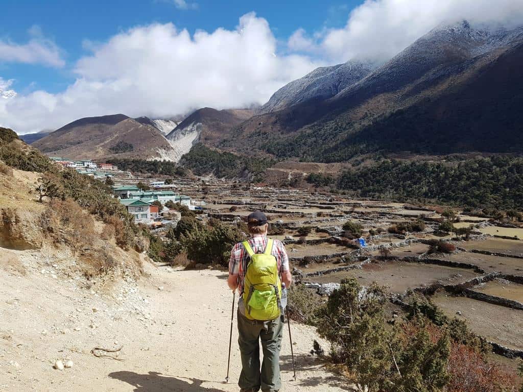 NB: We were there in (very) early November (2019). The best of times. At other times of the year you might need more clothing. Check climate averages (eg for Namche/Lukla). It is also much colder above Dingboche – though the proprietor of the Snow Lions there told us (on a +12C day) that the same day last year had been -12C! Also check the weather forecasts!