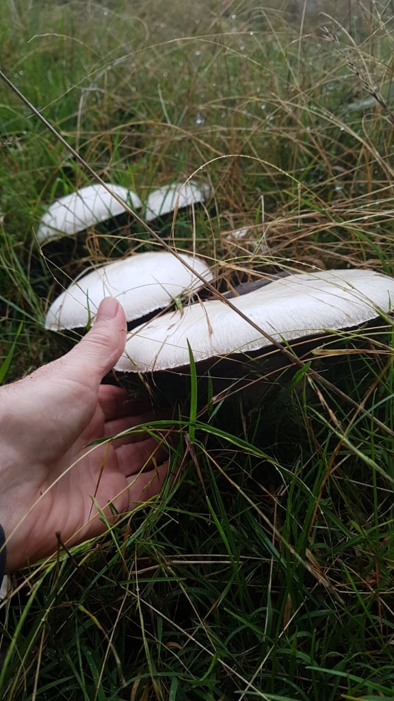 Nearby there is a fine crop of very large field mushrooms which we collected for our (delicious) dinner last night.