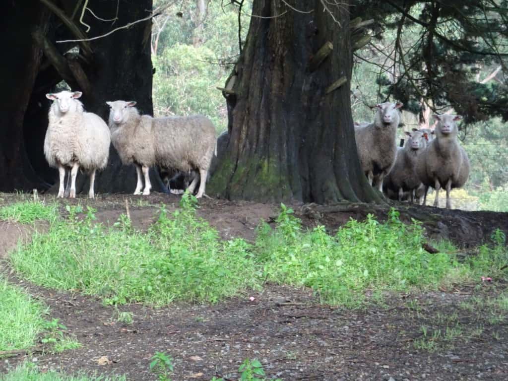 Later they were sheltering under one of the 1912 Monterey Cypresses from the rain.