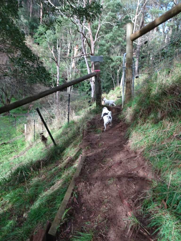 There is a junction in the creek right at our top boundary. You can see the treated pine timbers we carried up there to build the new path.