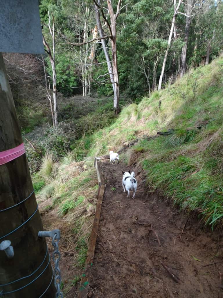 I have cleared the first kilometre or so of the path in the forest beyond though it needs more work (particularly blackberry spraying), but also I need to improve the access through the gate in the back corner which is on a particularly steep slope. Quite a lot of digging is needed there to make a safe path, and I might as well add some hand rails too.