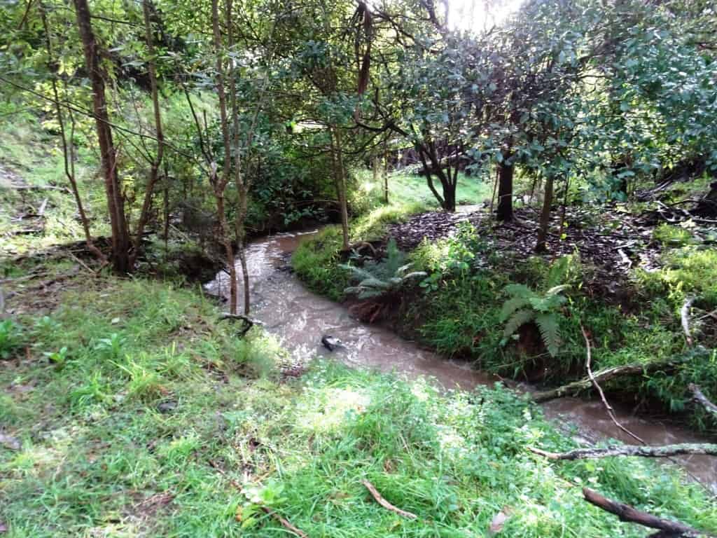 Looking up the creek. You can see where one old (fallen) Blackwood has been harvested for our winter’s fires.
