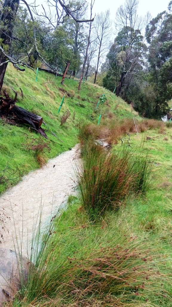 It was the coldest 1st May on record they say, though I reckon I can recall a colder one when I was about ten and had to swim out on an icy flooded pond in just such a creek to retrieve a water rat and trap. Their fur was the most expensive and sought after – long after it was no longer legal to take them. The Myxomatosis (rabbit eradication) programme spelt the end for them (as so much wildlife: pademelons, antechinus, bandecoots, quolls etc) as there was suddenly nothing else for foxes and cats to eat. Hence our wildlife or fox-proof fences. There are still antechinus and bandecoots around, though the wombats and roos eat all their vegetation and the foxes eat them. I hope to see them come back inside our fences where they will be able to get.