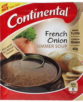 We found this soup to be just about the most delicious we have ever eaten at home – and we eat a lot of soup, so just imagine how delicious it will be on the trail. Again it uses Continental French Onion Soup as a base and makes use only of dehydrated ingredients (or ingredients which will not leak, or which can be ‘caught’ on the trail).