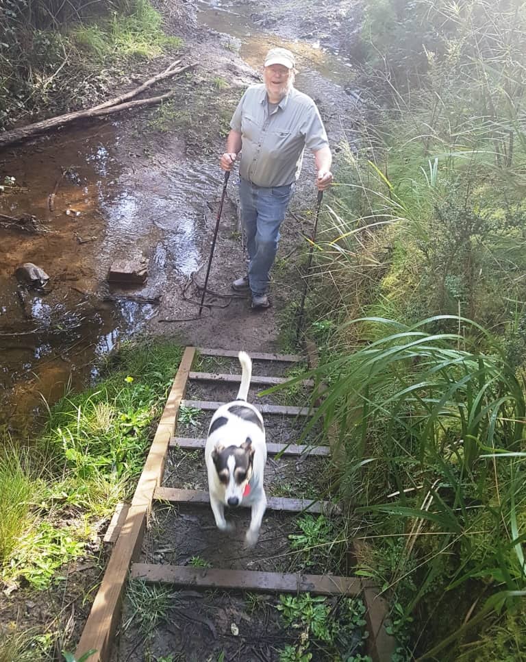 Me sitting on a convenient stump to ease my back. The lack of a haircut & beard trim is a legacy of the Covid lock-downs!