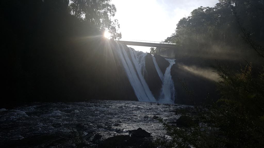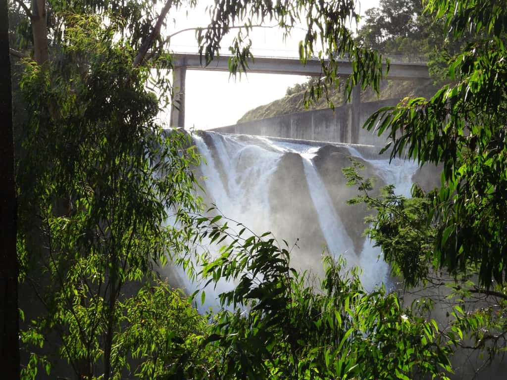 Just on sunset we came to the bottom of the dam which was overflowing powerfully giving us some wonderful views of its spectacular, seldom seen waterfall: