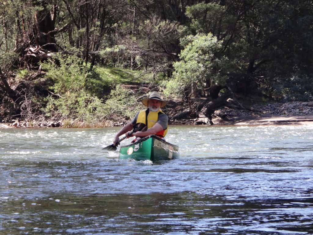 A year ago I had a similar day on this lovely river by myself. I had asked my new friend Russell Irving to come along. He was very keen on the trip (and others like it) but unfortunately had to beg off due to work commitments – though he was exactly my age (70) and should have long since been tired of working every day! I said to him (then) that there might not be many such opportunities as the river is canoeable now on very few days a year since the bushfires back in 2006! He needed to ‘seize the day’, I said.