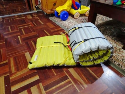 Another planned version  has some other pieces attached to the Back straps which allow the mat to be folded in two with carbon fibre tubes (or pieces of branch) to act as stiffeners and props at the back.