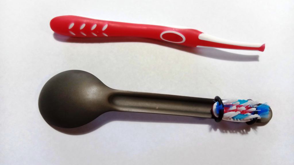PS: Just as a matter of interest I cut the red backing off the toothbrush head. You can see the result in the photo here: