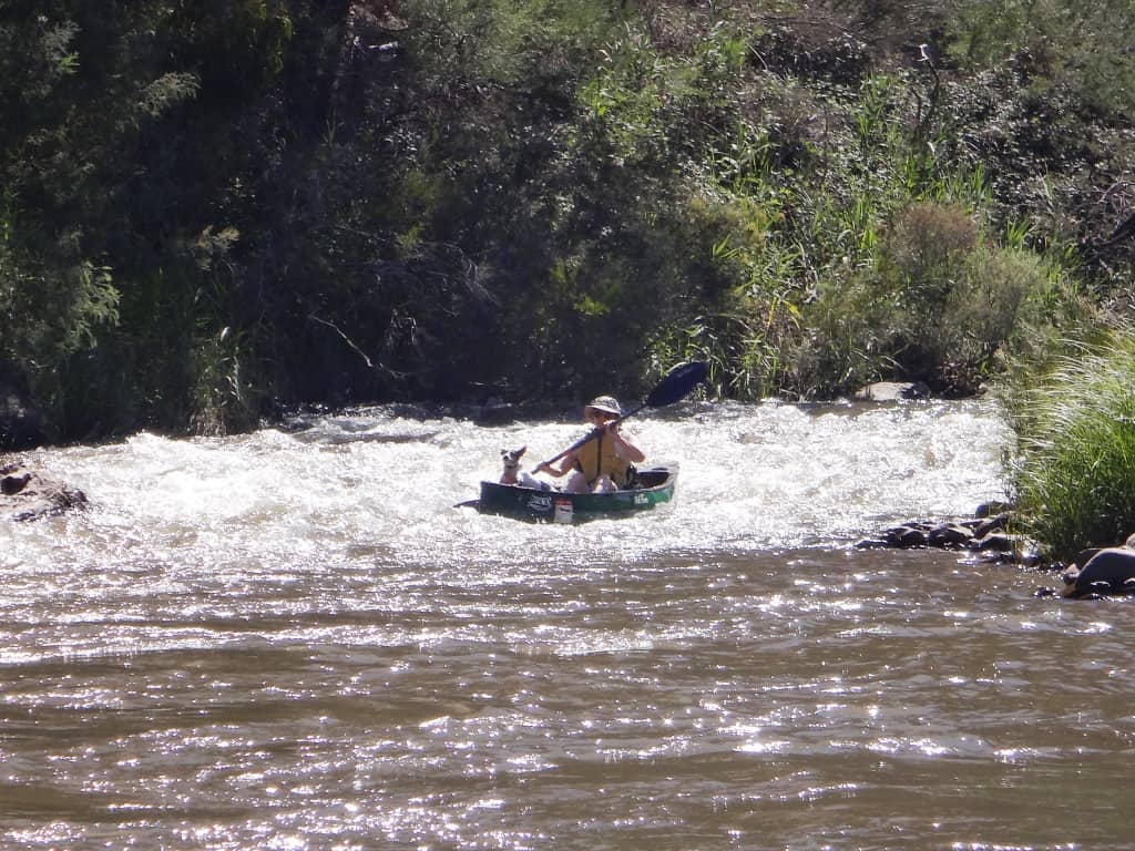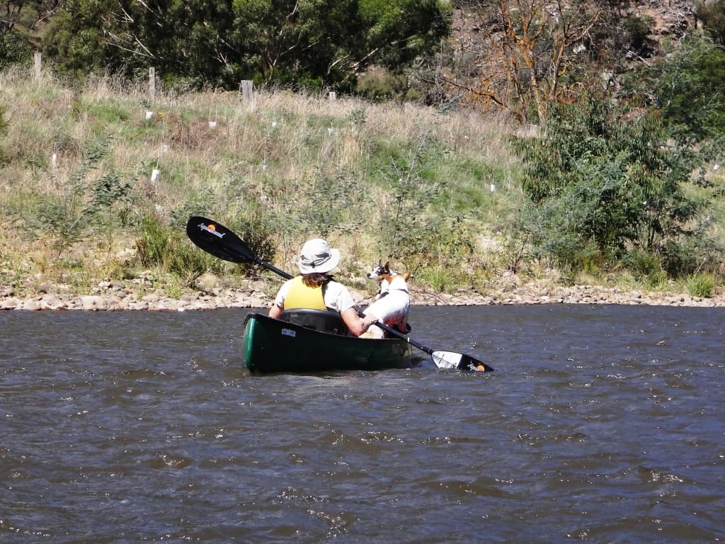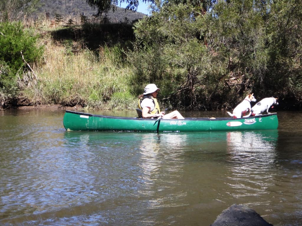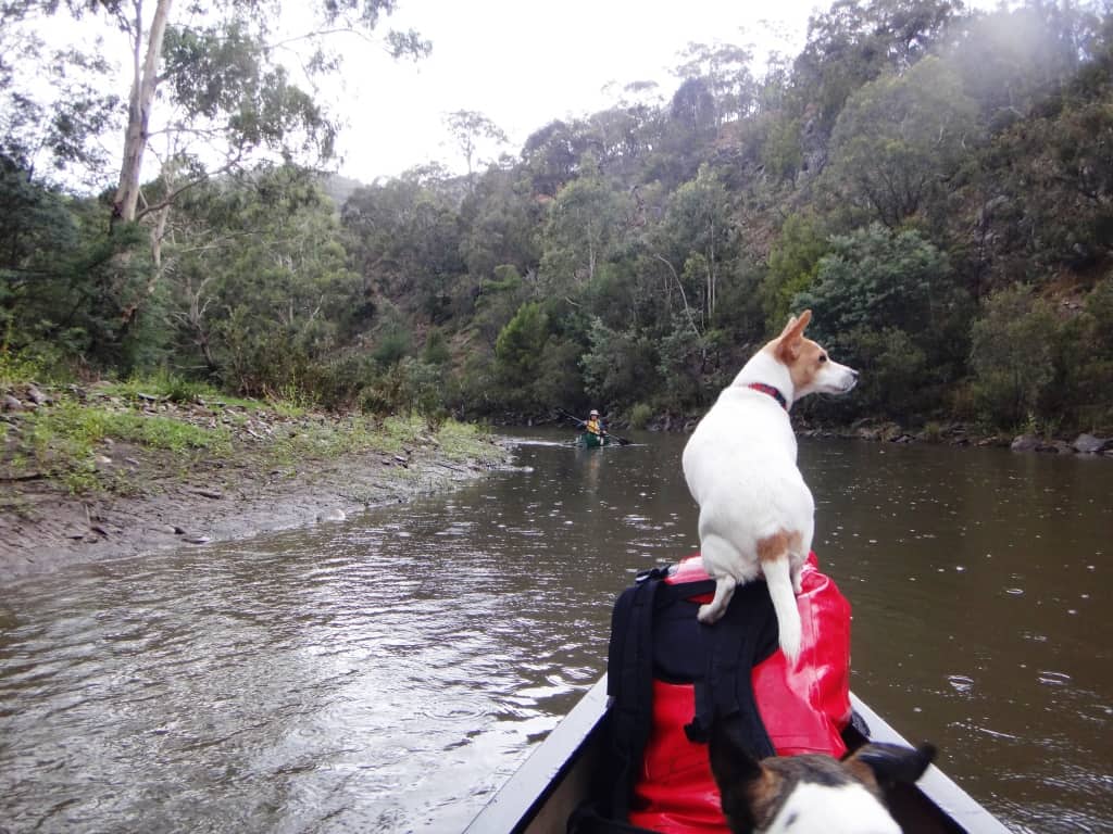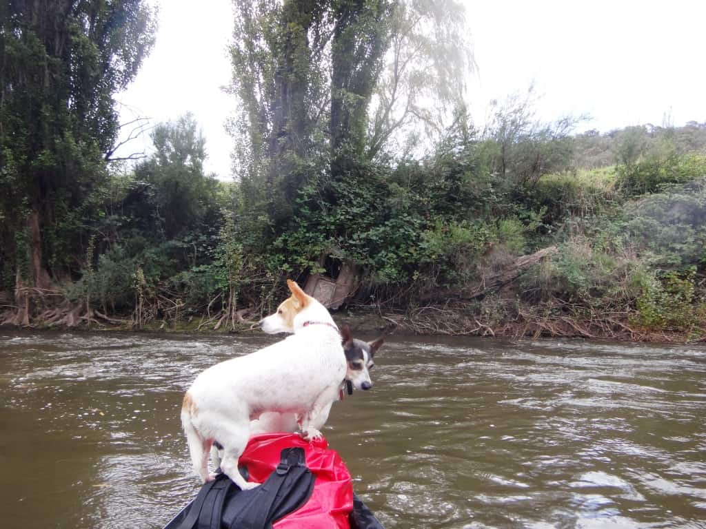 The dogs only appear to have settled in. Honey is a real ‘water dog’. She likes nothing better than to jump off one canoe then swim to the other. She drives us nuts with this trick until we become so cross with her we bully her into desisting – usually only just after she has nearly had one or other of us out of the boat in a rapid worried about her drowning her silly self!