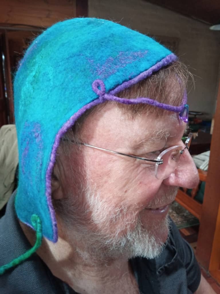 I like the reversible wool hat with the ear warmers myself. I will try to make this one out of 3mm felt from Spotlight. The pattern says is fits a 32″ head (meaning I suspect 23″!) Mine is 1″ bigger than that so I will ‘stretch’ the pattern out to 24.5″ so I’m sure it is big enough and give it a try!