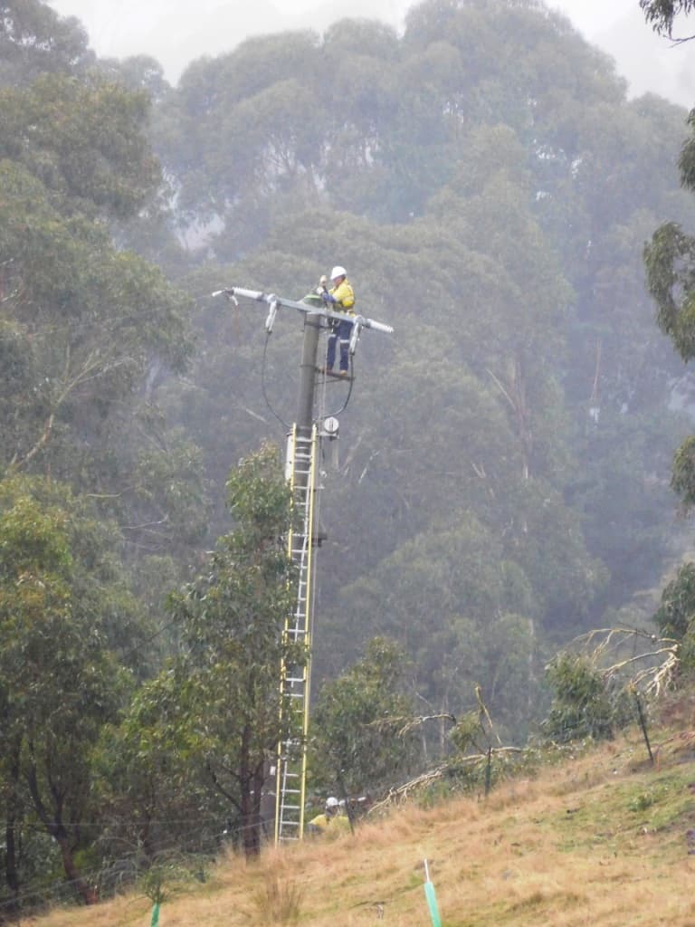 One just next door took out the power line. This guy is over ten metres up fixing it (four days later).
