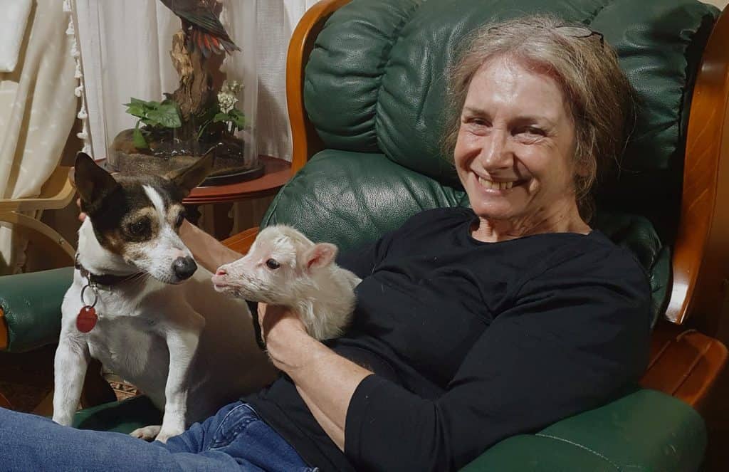 (Della): Home is often a bit of a ‘menagerie manor’ during lambing, but this little fellow takes the cake. Born prematurely to a maiden ewe a couple of weeks ago, we rescued him from a mud puddle next to his expired twin and brought him inside to see if we could save him with warmth and milk. We have tried, with limited success, to get him feeding off his mother, and thought they were getting somewhere until the ewe managed to stomp on him and break his leg a couple of days ago. Now he is hobbling about with a splint but hasn’t lost any of his sparkling little personality, preferring to leap (3-leggedly) out of his box next to the fire and cuddle up on a lap. We have been telling him that he will need to learn to be a paddock sheep, but he just nuzzles our hands and settles down for a nap.