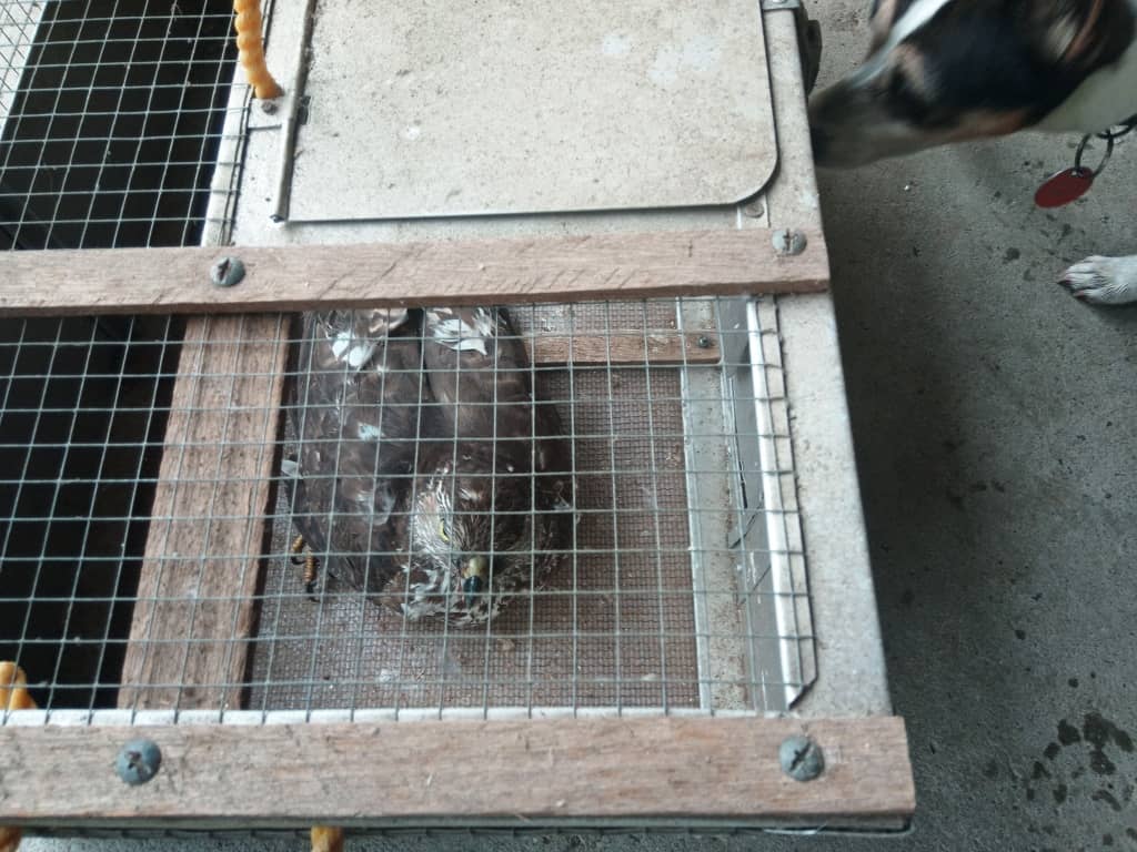 Here is one stuck inside the pigeon cage (unfortunately with one half-eaten dead pigeon and a lot of very frightened live ones).