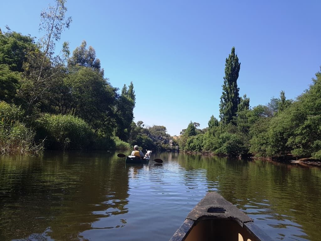 There was 2.05 metres of lovely water on the Waterford gauge and 1.60 on the Crooked River gauge and several above 30C degree days to look forward to so we filled the 15 litre Esky keg with ice (and some celebratory cans of champagne for Della) tossed all our gear into two cars and headed off (of course with the two dogs) to Eaglevale intending to canoe down to Kingwill Bridge over a (very) leisurely three days. This is an excellent height but we enjoyed the trip before with only 1.75 on the Waterford gauge.