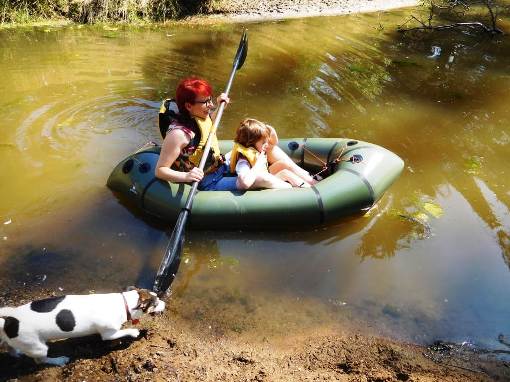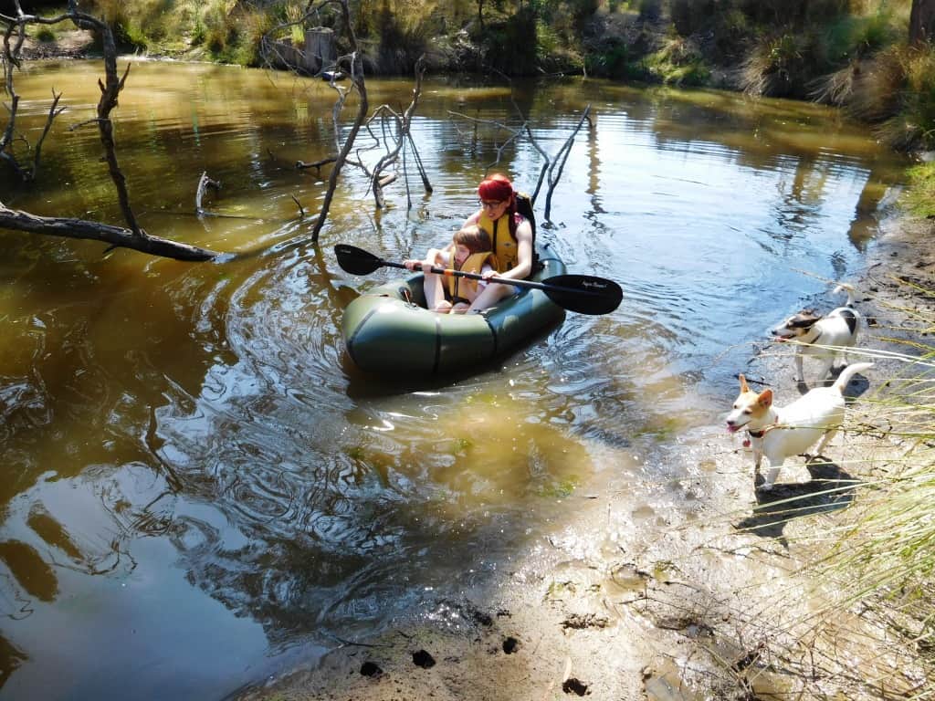 This is the Alpacka Scout which I bought for my wife Della (or was it for myself?) for a Xmas present – here modeled by my daughter and grandson in the farm dam.